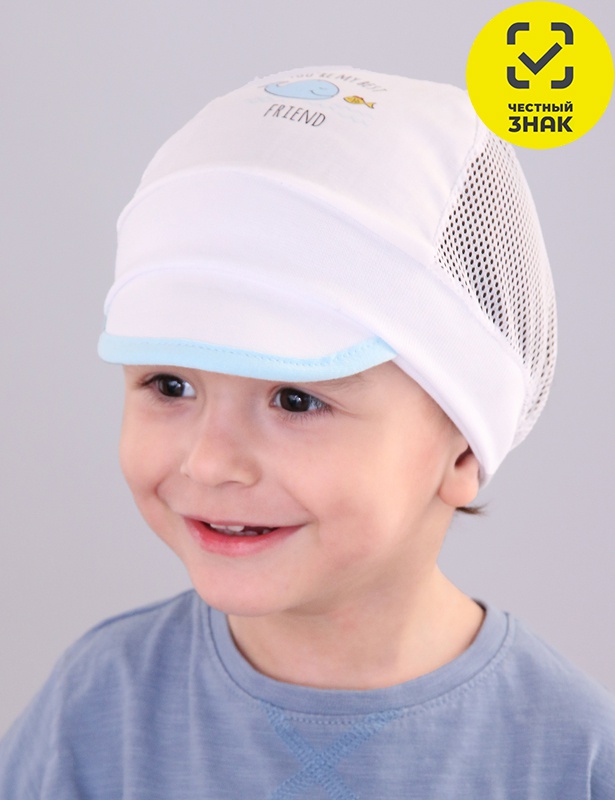 Кепочка летняя с козырьком, на эластичной манжете, вставки из сетки по бокам, декорирована рисунком.