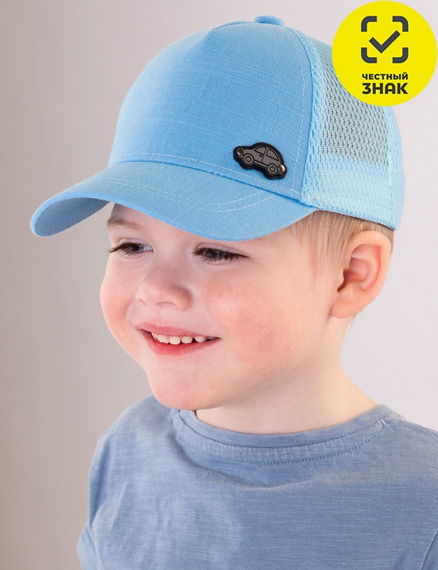 Бейсболка из хлопкового полотна, декорирована нашивкой, сзади фиксируется по обхвату головы при помощи застежки.