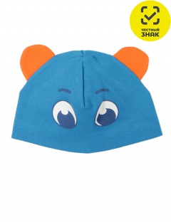Шапочка двухслойная из рибаны с эластаном. Декорирована ушками из основного полотна дополнительного цвета и принтом.