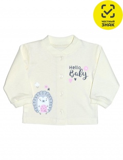 Кофточка ясельная, застежка центральная по переду на кнопки (пуговицы). Рукав длинный. Горловина, низ рукава обработаны ластиком. Низ изделия подшит. Перед с печатью.