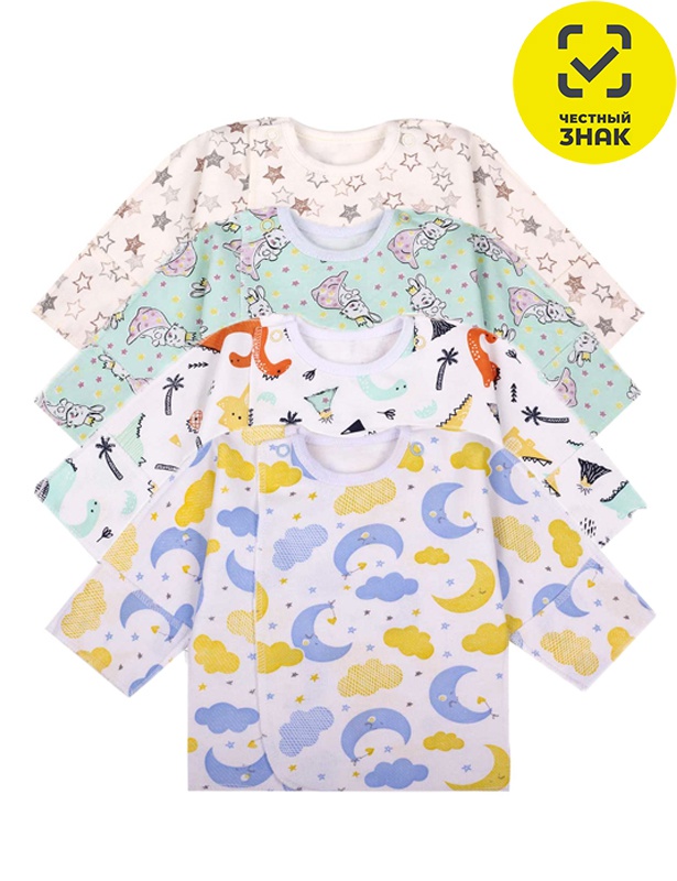 Распашонка из набивного футера, с застежкой из двух кнопок на плече, швы наружу.Горловина обаработана рибаной хб.Рукав-трансформер.