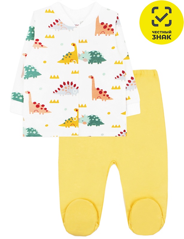 Комплект ясельный из мягкого футера с начесом, швы наружу. Кофточка на кнопочках и с открытыми ручками. Пояс ползунков на резинке, ножки закрытые.