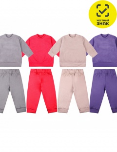 Комплект ясельный из футера интерсофт (барашек). Джемпер длинный рукав, с кнопками на плече. В поясе брюк эластичная лента.