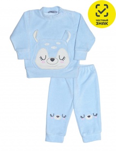 Костюм ясельный из велюра, состоит из лонгслива и брюк на резинке. Модель с длинным рукавом на манжете и воротником-стойкой. На лонгсливе накладной карман с вышивкой-аппликацией. Застежка на кнопках существенно облегчает переодевание ребенка. В таком костюме малыш будет чувствовать себя свободно и комфортно.