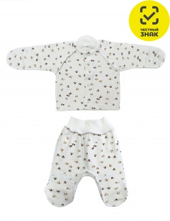 Комплект ясельный из набивного интерлока, состоит из кофточки с антицарапками и ползунков на еврорезинке.