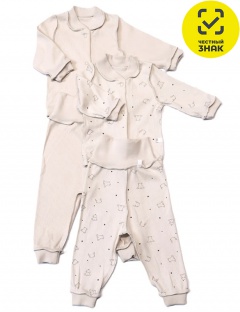 Комплект ясельный «швы наружу» из однотонного и набивного полотна - идеальный выбор для комфорта и удобства малыша. Набор из двух кофточек и двух штанишек из 100% хлопка обеспечит нежную заботу о коже ребенка. Мягкий и приятный к телу интерлок «лапша» подарит ощущение комфорта в течение всего дня. Кофточка с втачными рукавами, на манжетах, воротник стойка, центральная застежка на кнопки. Штанишки с широким анатомическим поясом, на манжетах.
