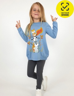 Комплект для девочки (джемпер+лосины). Джемпер свободного кроя, с печатью по переду, с двумя карманами в боковых швах. Рукав втачной, длинный. Низ изделия подшит с резинкой по боковым швам. Горловина обработана ластиком. Лосины длинные на резинке, без боковых швов.
