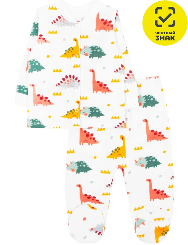 Комплект ясельный из мягкого футера с начесом, швы наружу. Кофточка на кнопочках и с открытыми ручками. Пояс ползунков на резинке, ножки закрытые.