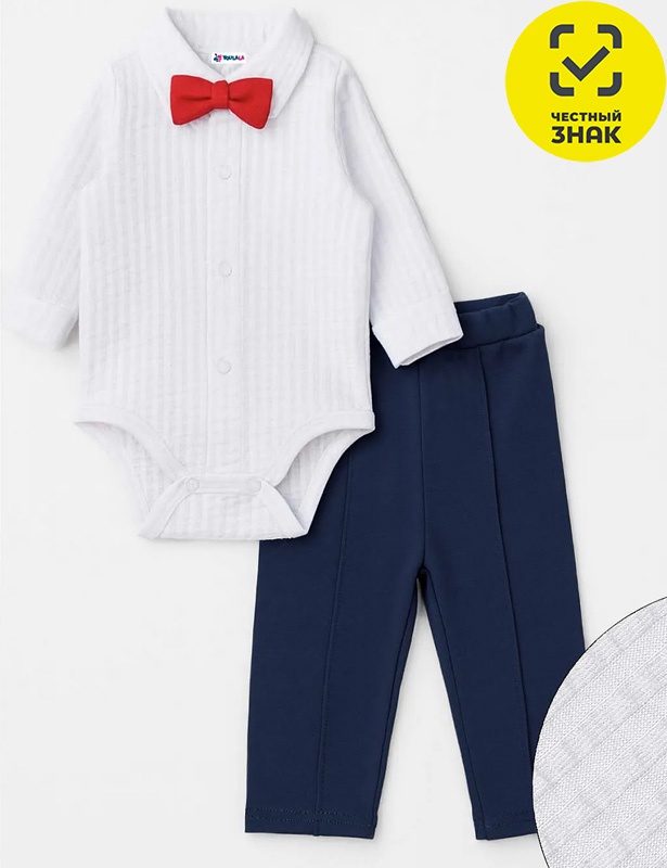 Нарядный комплект из интерлока для мальчика: боди на кнопках с бантиком и брюки на резинке