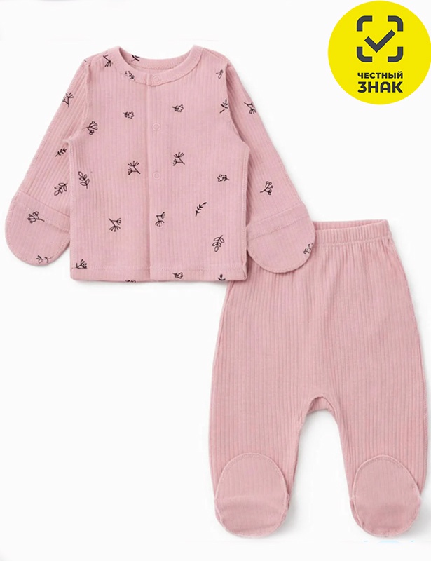 Ясельный комплект из ткани «лапша» состоит из распашонки и ползунков. Распашонка на кнопках с закрытыми рукавами, ползунки закрытые с резинкой на поясе.