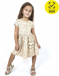 Платье приталенного силуэта, отрезная юбка со сборкой и два накладных-вшитых кармана. Короткий рукав, застежка по переду на пуговицы. Горловина окантована.