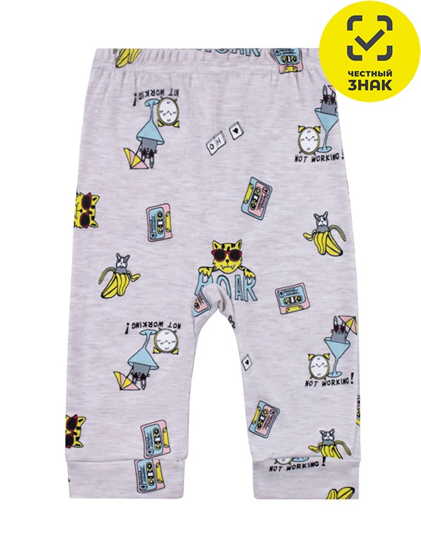 Брюки ясельные из набивного интерлока, на поясе на резинке, по нижним срезам на манжетах.