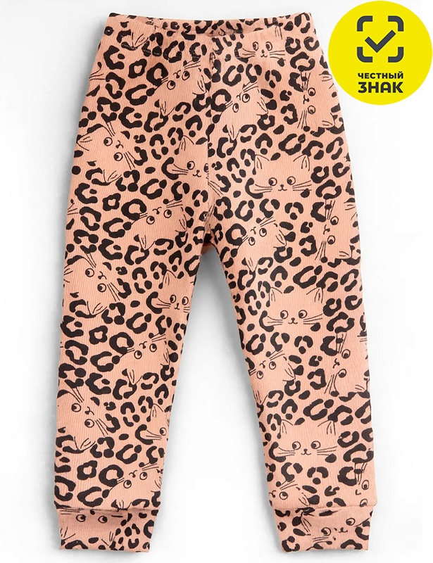 Брюки для девочки из набивного полотна кашкорсе, на поясе на резинке, по низу на манжетах.