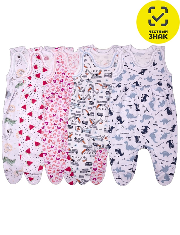 Ползунки длинные с ластовицей из набивного кулира с застежкой на плече. Горловина и пройма обработана рибаной хб.