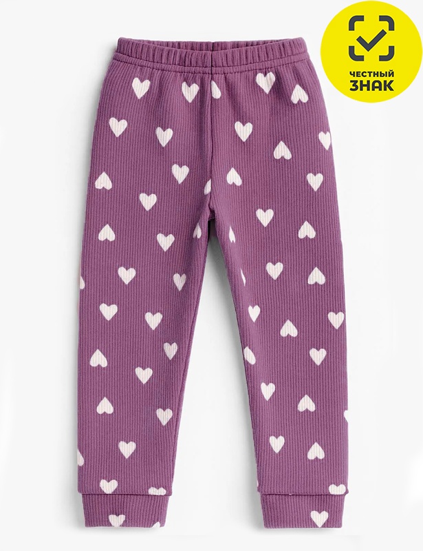 Брюки для девочки из набивного полотна кашкорсе, на поясе на резинке, по низу на манжетах.