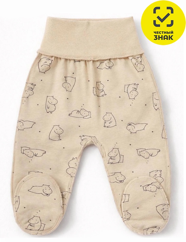 Ползунки ясельные из набивного полотна, на широкой эластичной резинке, закрытая ножка, швами наружу.