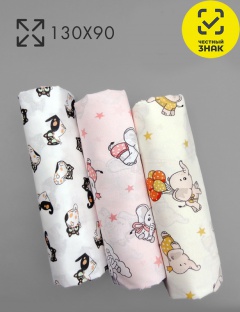 Пеленка из плотного ситца размером 90х130 см. Набор из 3 штук, цена указана за набор.