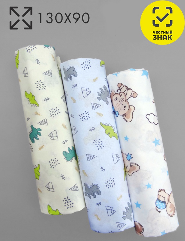Пеленка ситцевая размером 90х130 см. Набор из 3 штук, цена указана за набор.