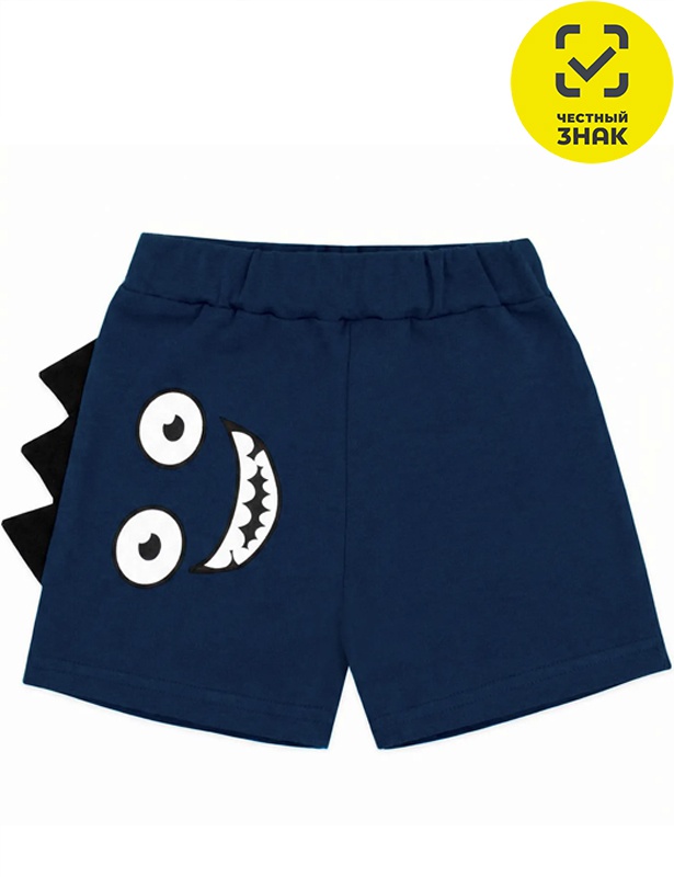 Шорты для мальчика из гладкокрашеного полотна, на поясе на резинке. Декорированы принтом.