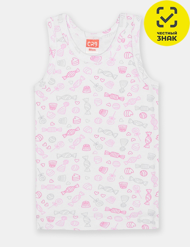 Производитель: ТМ CRB Артикул: CWKG 20074-20 Майка для девочки (Белый) Пол: девочка Полотно: рибана Состав: хлопок 100% Возраст: 2-7