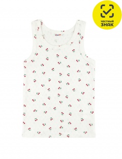 Майка детская классического кроя из трикотажного полотна кулирки с набивным рисунком. Горловина и проймы майки обработаны окантовкой.