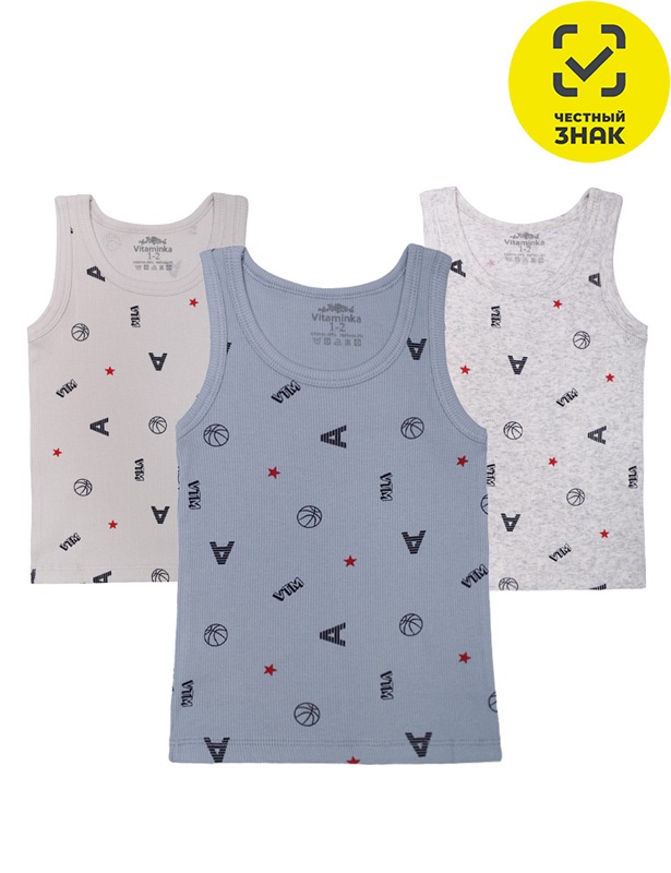 Майки для мальчиков. Идеальная посадка обеспечивает максимальный комфорт при носке. Яркие принты из натуральной краски, которая не трескается и не изнашивается при повседневной стирке. Чтобы ткань не вытягивалась и не деформировалась при носке, в состав хлопка добавлен эластан (5%). Цена за 1 шт., продажа по оптовым ценам осуществляется упаковками, 3 шт. в упаковке.