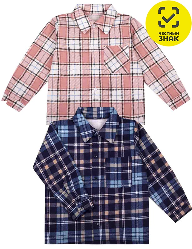 Детская утепленная рубашка с длинными рукавами, из футера двухнитки с начесом, центральная застежка на кнопочках, на груди накладной карман.