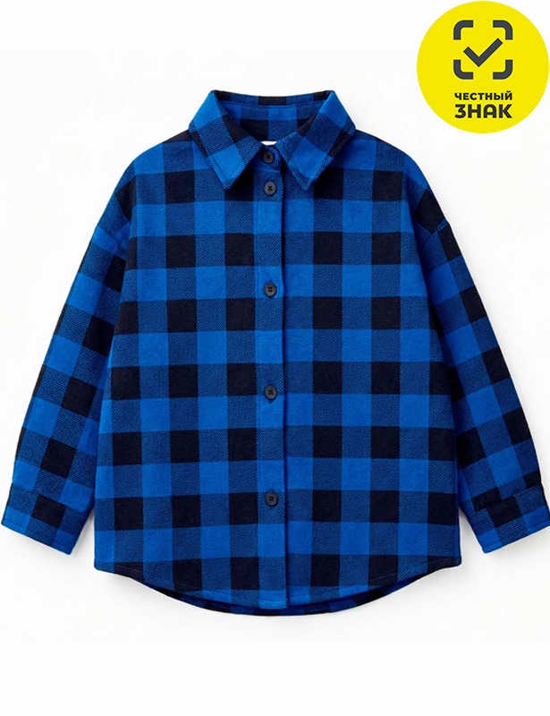 Рубашка для мальчика из футера двухнитки с начесом, с длинными втачными рукавами с манжетами, отложной воротник, застежка центральная на пуговицы.