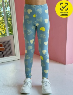 Лосины для девочки: из мягкого трикотажа из полотна в набивку "сердечки", без боковых швов, длинной по щиколотку.