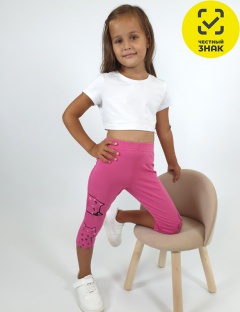 Лосины для девочки, укороченные, с боковым швом, с печатью на передних половинках.