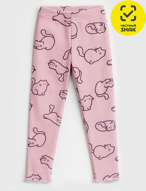 Лосины для девочки, выполнены из мягкого кашкорсе с добавлением лайкры. Имеют эластичную резинку на поясе. Нижние срезы обработаны декоративным волнообразным швом.