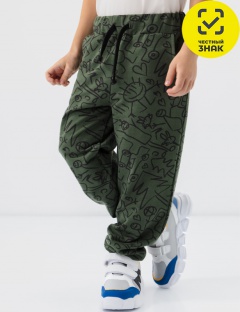 Брюки для мальчика: Брюки из полотна в набивку "абстракция", с боковыми карманами и манжетами по низу. Пояс притачной, с резинкой.