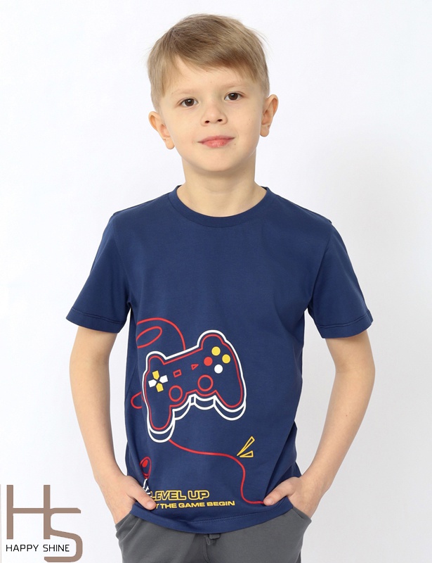 ТМ Happy Shine. Футболка с коротким рукавом. Горловина круглая, обработана узким воротником из полотна с эластаном. Перед оформлен принтом.