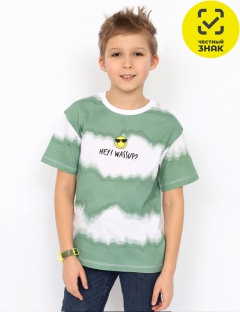 Футболка для мальчика с коротким рукавом из полотна с набивкой. Горловина обработана притачной бейкой из рибаны с лайкрой. Перед декорирован принтом.