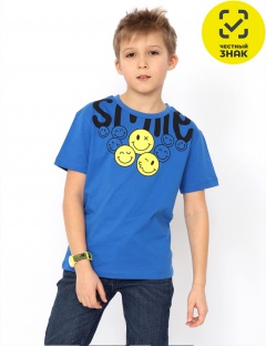 Футболка для мальчика свободного покроя. Рукав втачной, горловина обработана притачной бейкой из рибаны с лайкрой. Перед декорирован принтом "Панно".