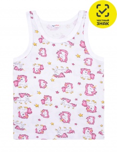 Классическая майка для девочки, из набивного кулирного полотна, проймы и ворот окантованы.