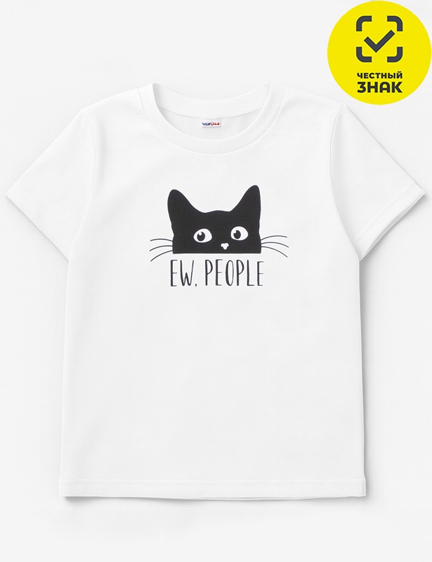 Футболка детская из набивного полотна, с короткими втачными рукавами, округлой горловиной, на полочке печать.