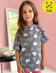 Футболка для девочки: из мягкого трикотажа в набивку сердца. Футболка с коротким рукавом. Горловина круглая, окантована.