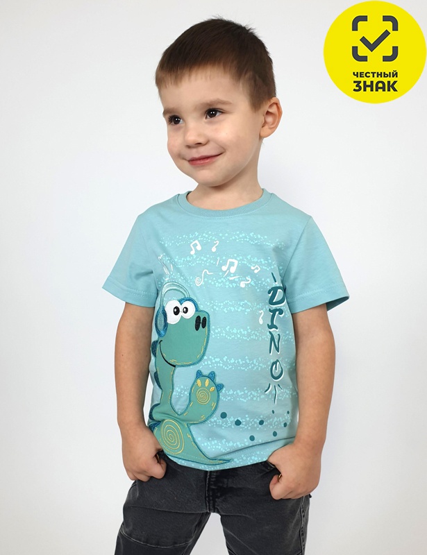 Фуфайка для мальчика прямого силуэта, короткий втачной рукав, горловина обработана ластиком. Печать и вышивка на переде.