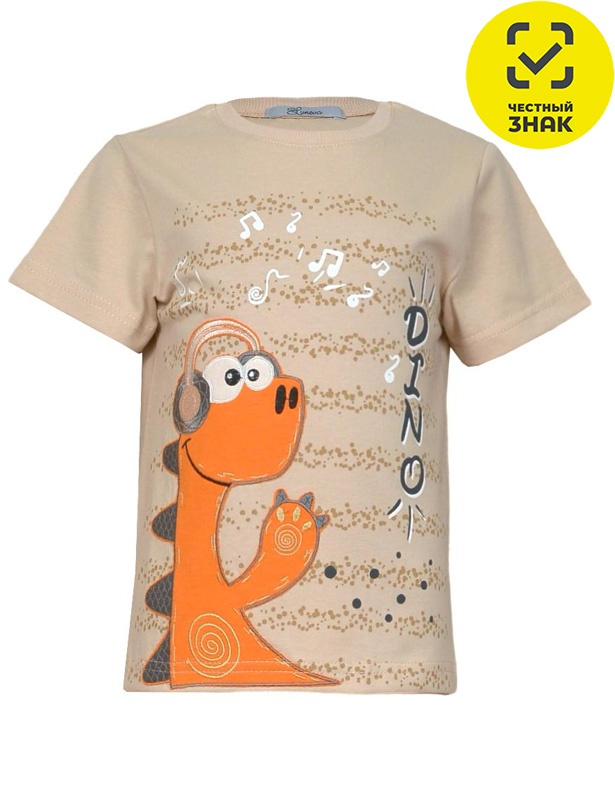 Фуфайка для мальчика прямого силуэта, короткий втачной рукав, горловина обработана ластиком. Печать и вышивка на переде.