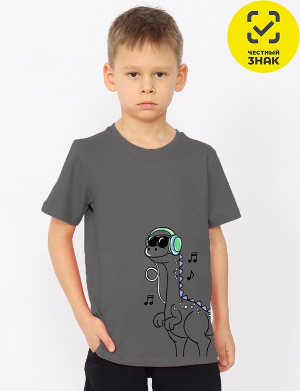 Футболка для мальчика из кулирного полотна, с короткими втачными рукавами, округлая горловина, перед декорирован принтом.