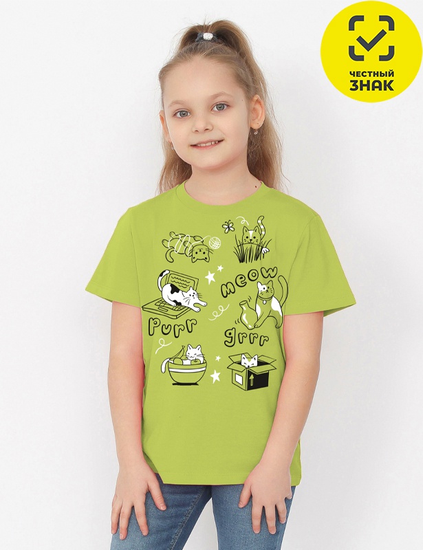 Производитель: ТМ CRB Артикул: CSKG 64276-36K Футболка для девочки (Лайм) Пол: девочка Полотно: кулирная гладь Состав: хлопок 100% Возраст: 2-7