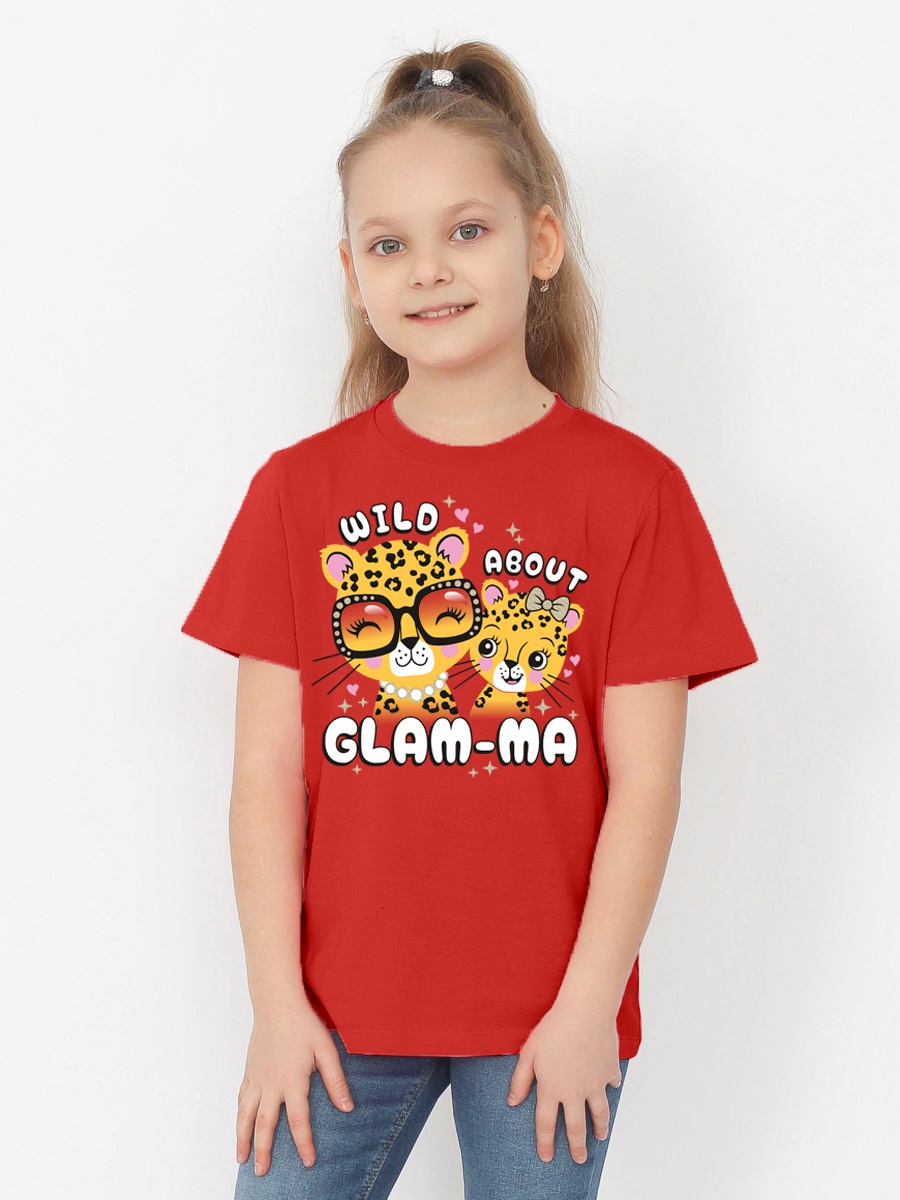 Футболка для девочки из кулирного полотна, с короткими втачными рукавами, округлая горловина, перед декорирован принтом.