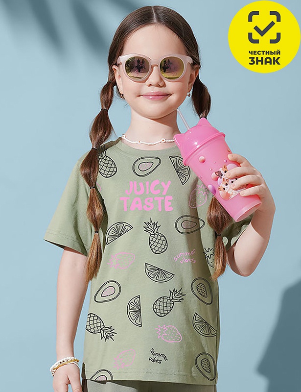 Производитель: ТМ Clever Артикул: CLEVER Футболка дев. 867432/17кд_п (хаки) Пол: девочка Полотно: кулирная гладь Состав: хлопок 100% Возраст: 2-7