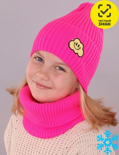 Комплект детский: шапка и шарф-хомут на подкладе из флиса. Шапка с отворотом и декорирована нашивкой.