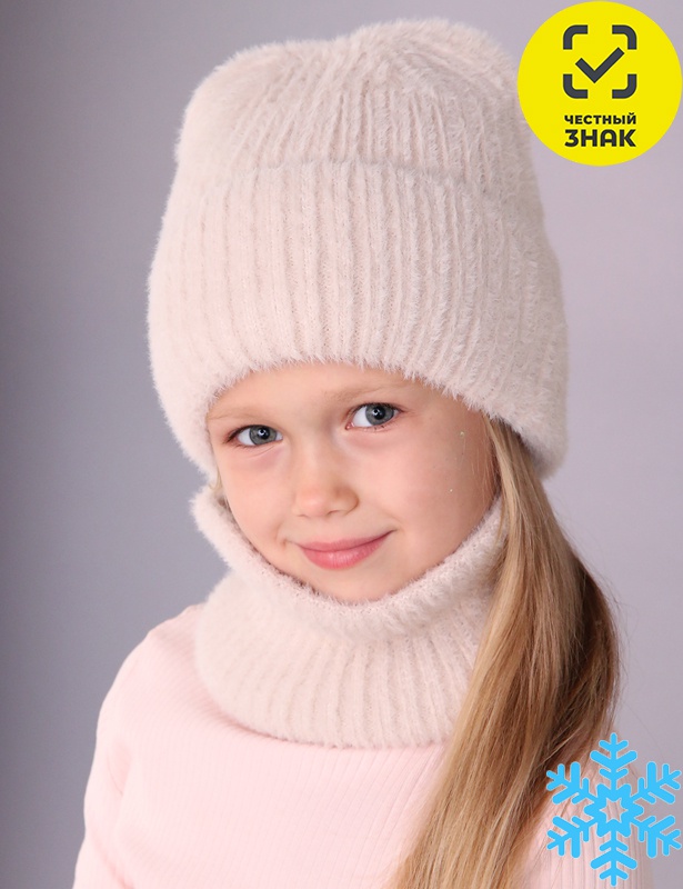 Производитель: ТМ Теплыши Артикул: L-19-56 Набор шапка+снуд для девочки Пол: девочка Полотно: вязаное полотно Состав: 30% шерсть, 70% акрил, подклад: 100% пэ Возраст: 2-7