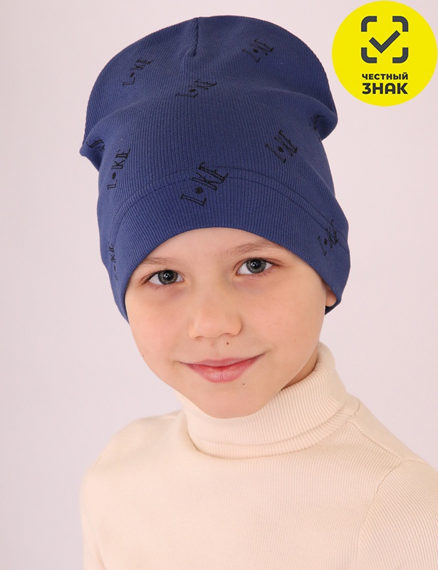 Шапка детская на сезон осень-весна, декорирована принтом.
