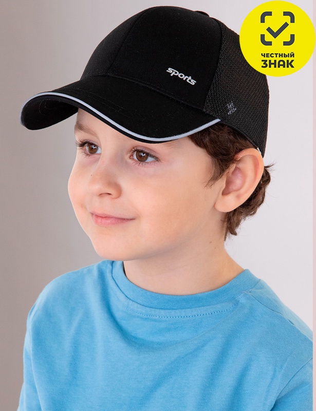 Бейсболка из хлопкового полотна, декорирована нашивкой, сзади фиксируется по обхвату головы при помощи застежки.