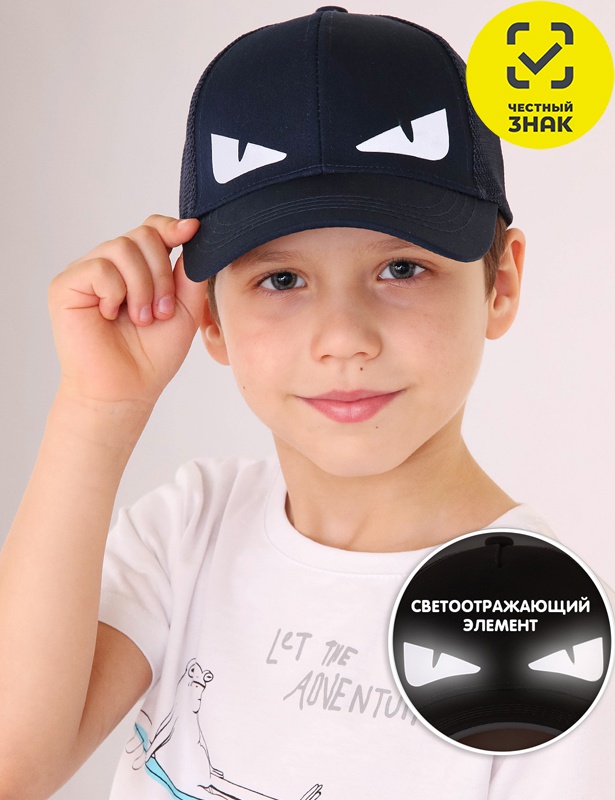 Бейсболка из хлопкового полотна, декорирована свтеоотражающим термопринтом.