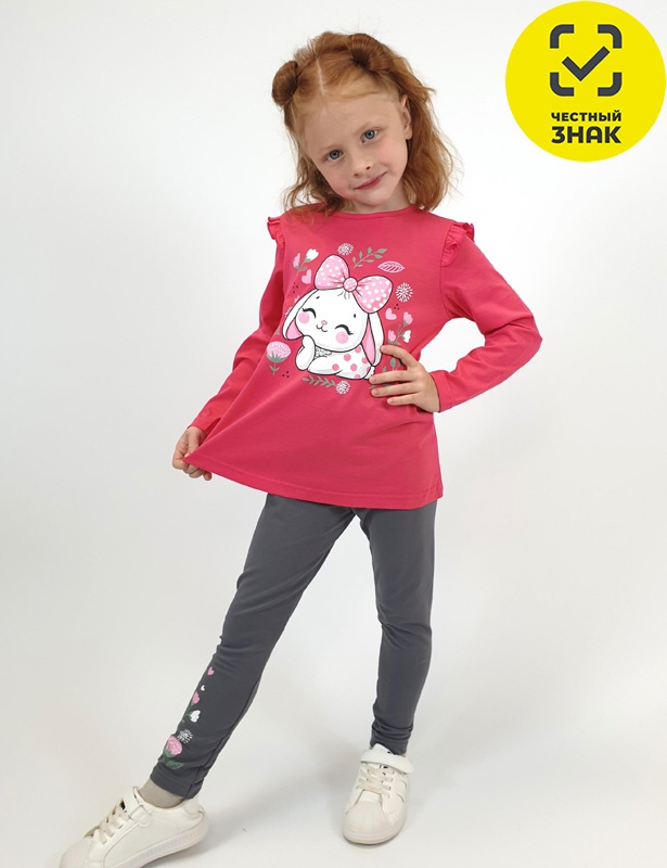 Производитель: ИП Лунева Артикул: 02-143-3 Комплект для девочки Пол: девочка Полотно: кулирная гладь Состав: верх: 100% хб, низ: 95% хб, 5% лайкра Возраст: 2-7